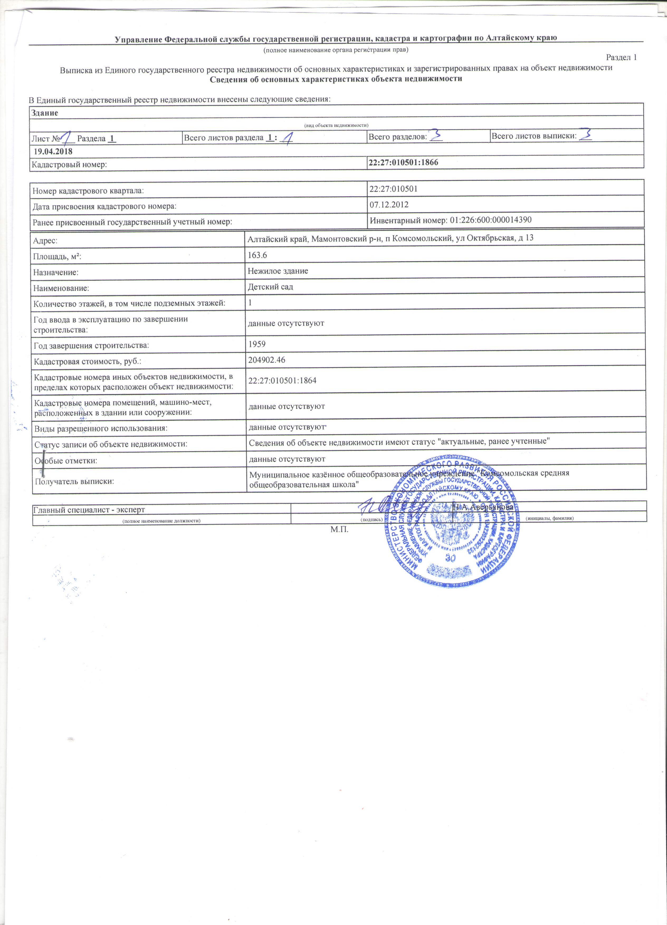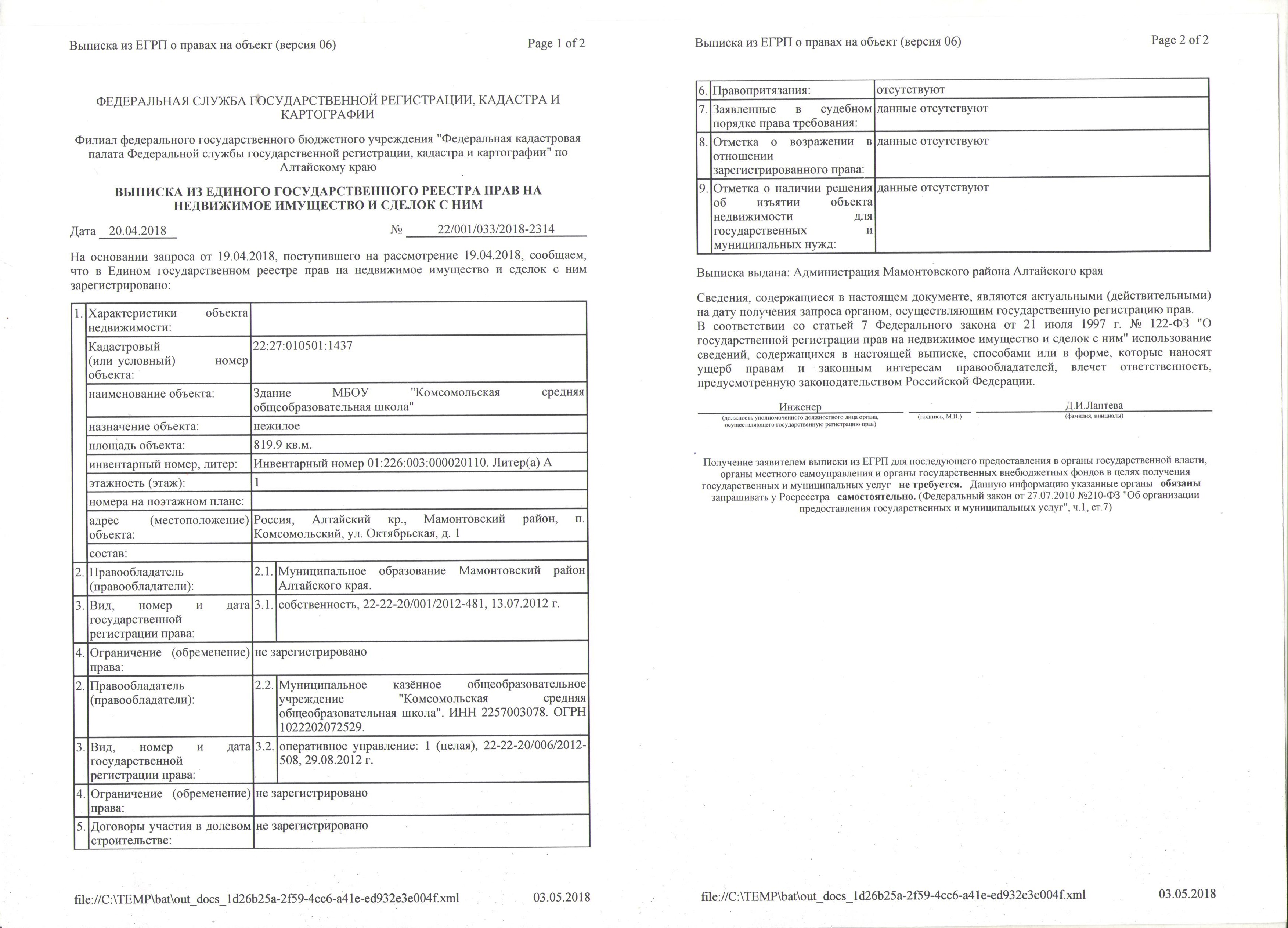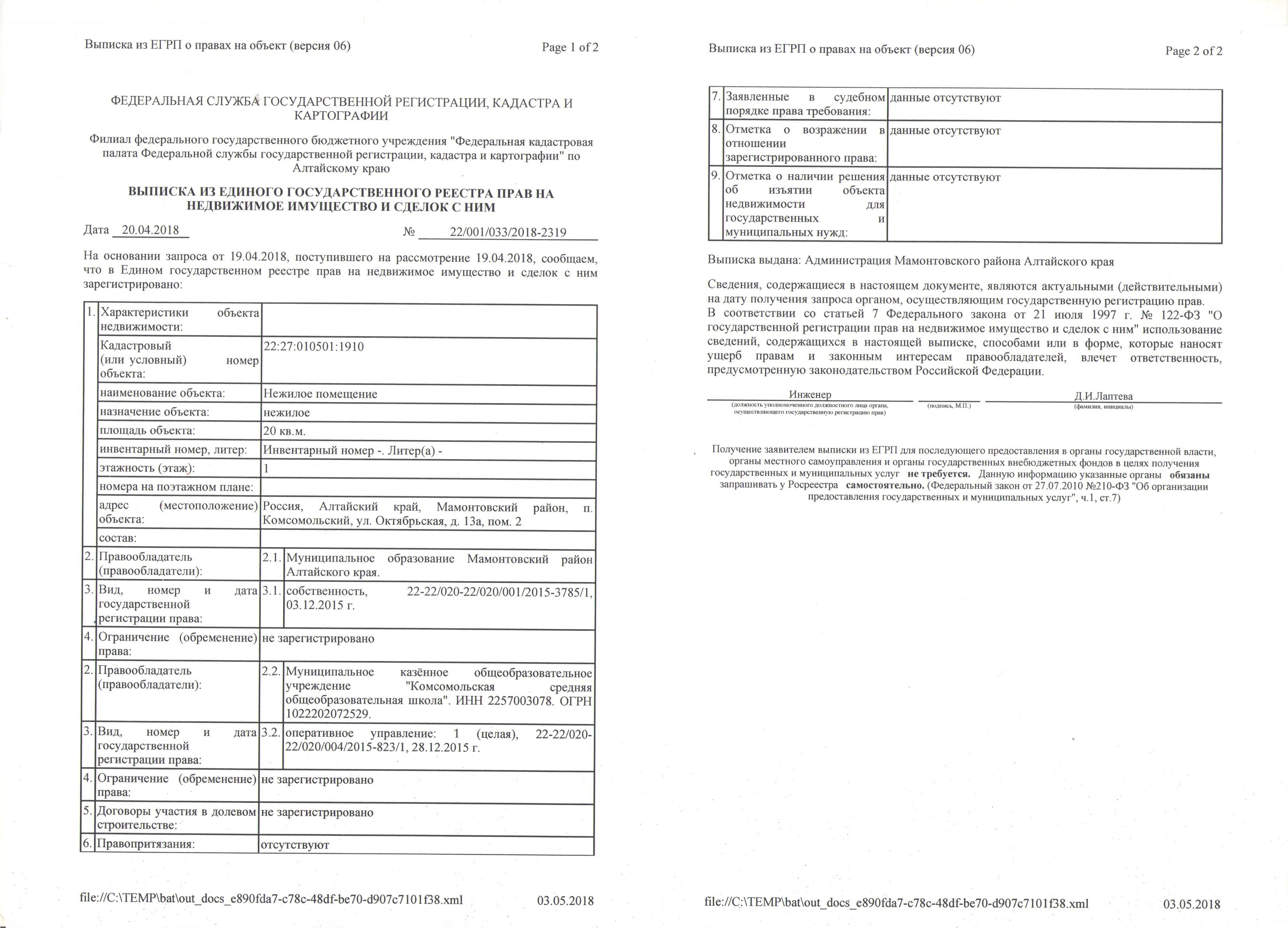 По основным программам: 658000, Алтайский край, Мамонтовский район, пос. Комсомольский, ул. Октябрьская, д. 13